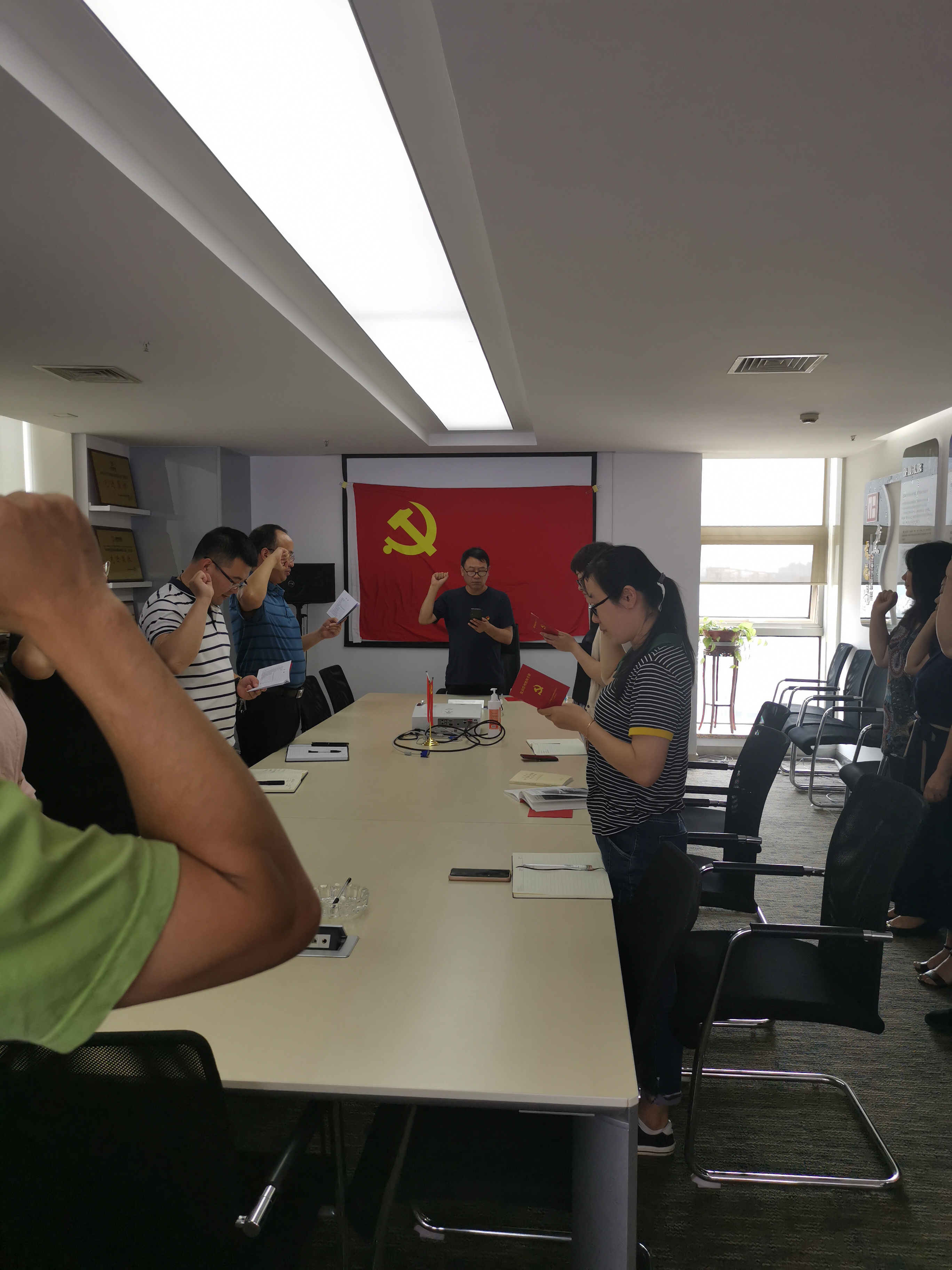在我所姚煥剛總經(jīng)理的引領(lǐng)下,我所全體黨員莊嚴(yán)的舉起右手,在鮮紅的黨旗下重溫入黨誓詞,堅定永遠(yuǎn)跟黨走的決心。