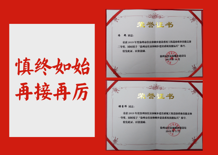 恭賀! 我所儲(chǔ)召偉、馮艷同志榮獲2019年徐州市住房城鄉(xiāng)建設(shè)系統(tǒng)工程造價(jià)職業(yè)技能競賽“一等獎(jiǎng)”,并被授予“徐州市住房和城鄉(xiāng)建設(shè)系統(tǒng)技能標(biāo)兵”稱號(hào)